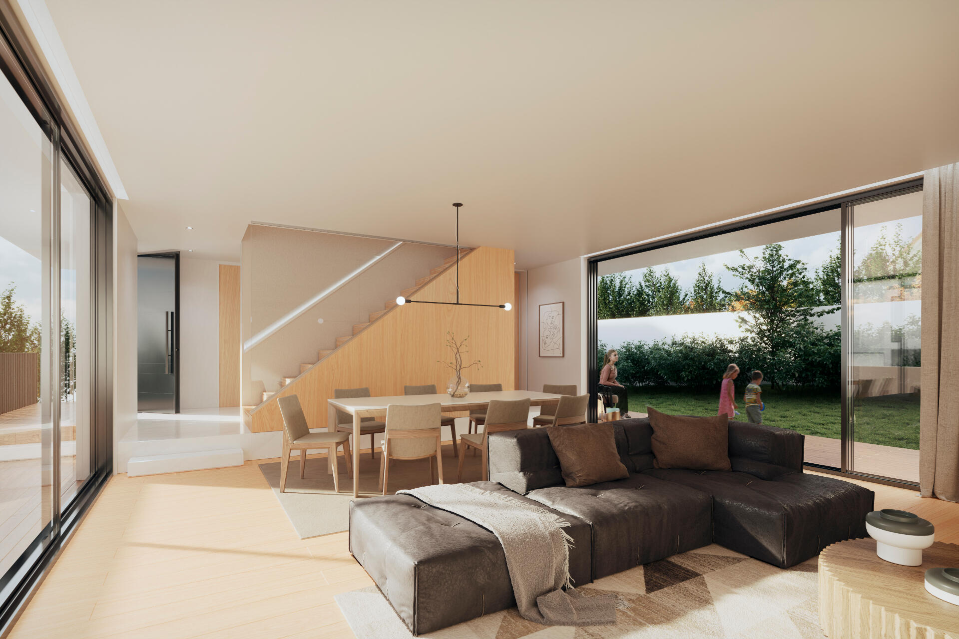 Located in a quiet and exclusive area, Villas do Cobre Design is an elegant, innovative, and environmentally sustainable development.The development comprises 9 Villas, each with 3-bedrooms plus den and private garage, over 3 stories.All of the finishing details are top quality and carefully chosen, environmentally friendly materials, such as marble and natural wood.The villas are designed to have large windows to enjoy abundant natural lighting, creating harmony between the indoor and outdoor areas. There is easy access to the balconies on the first floor, as well as to the exterior deck and garden with pool on the ground floor.The garage comes complete with charging possibility for electric vehicles.The heating and cooling system used (air conditioning), as well as the hot water heating system (heat pump and solar panels) allow for excellent energy efficiency, in line with the Villas´ comfort and environmentally friendly design.